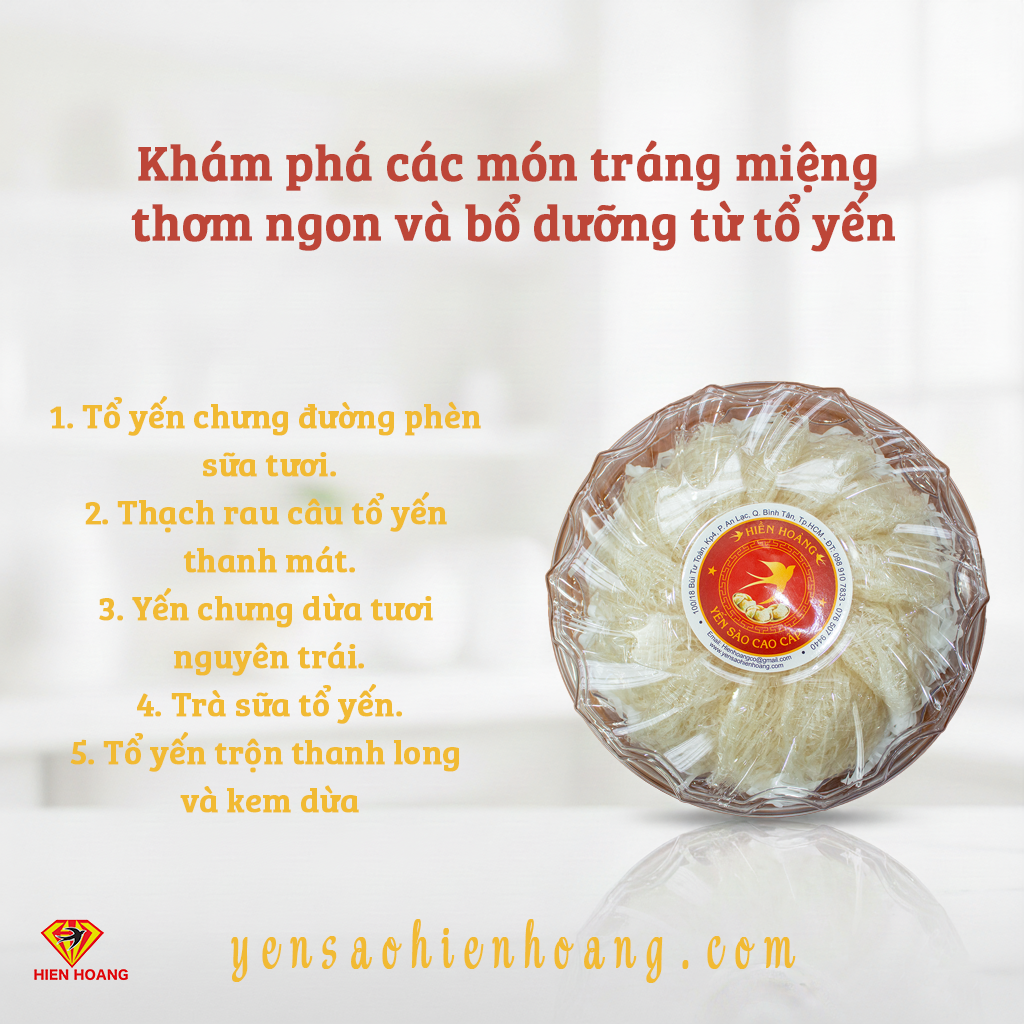 Một trong những cách đơn giản và thú vị để tận hưởng những lợi ích này là kết hợp tổ yến vào các món tráng miệng bổ dưỡng. Dưới đây là năm gợi ý bạn có thể thử: