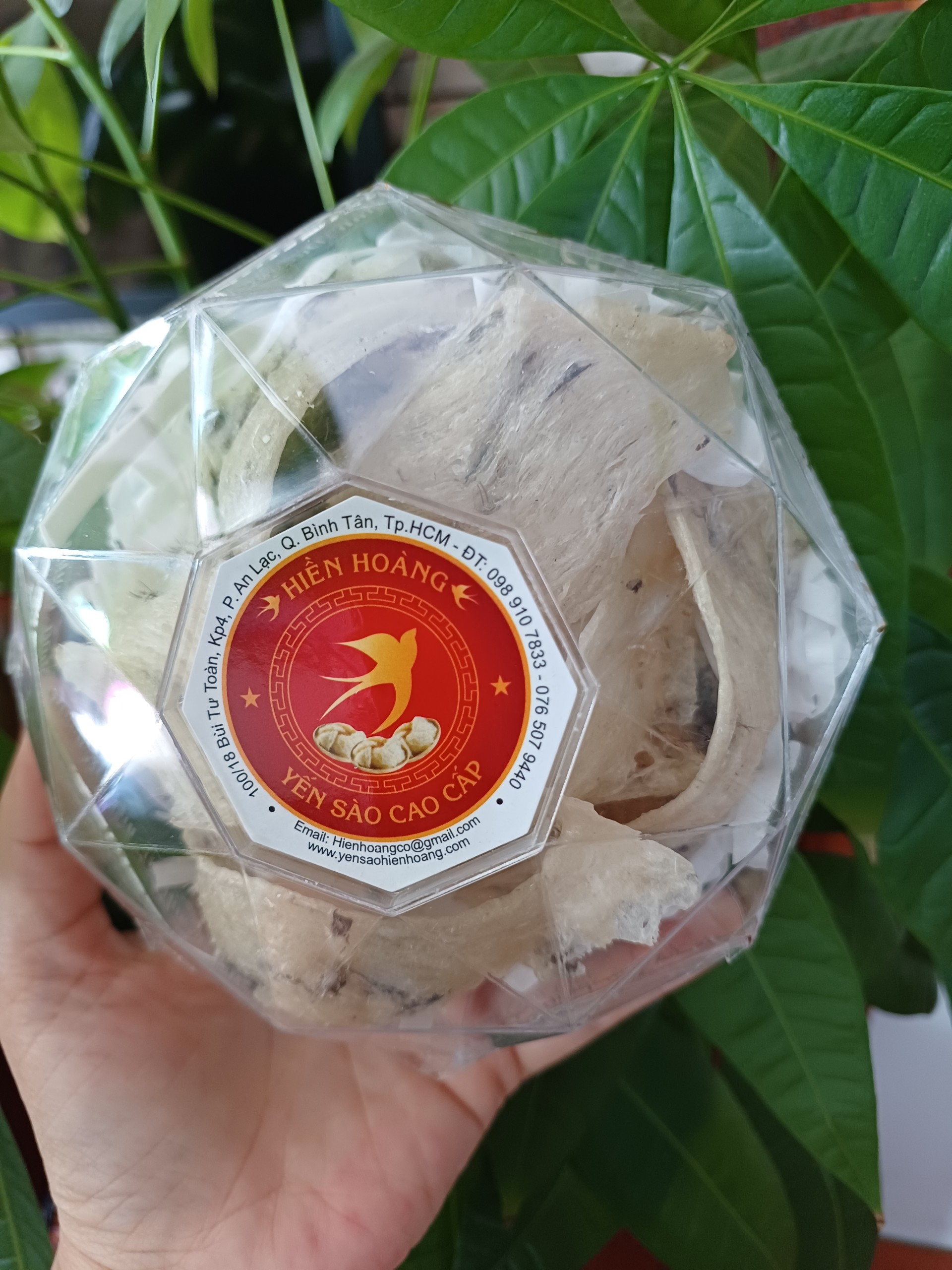 - Đặc điểm: Là tổ yến được khai thác từ các nhà yến của công ty Hiền Hoàng, vẫn còn lông, chưa qua sơ chế, vẫn giữ nguyên cấu trúc như khi vừa hái xuống.
